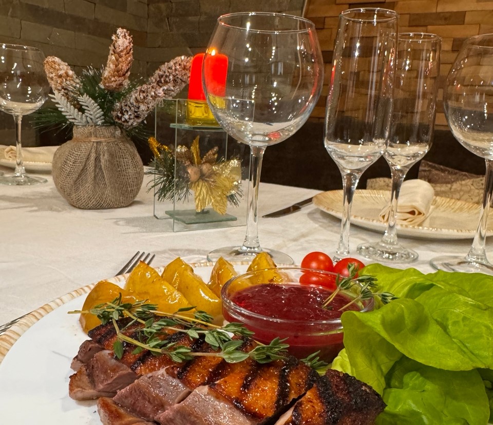 За доп плату можно заказать праздничный ужин в новогоднюю ночь, депозит 3000 р с чел (специальное меню). Можно заказать столик в лобби-баре с камином или доставку ужина а дом. Бар в новогоднюю ночь работает по режиму дискотеки с 22-00 до 03-00.