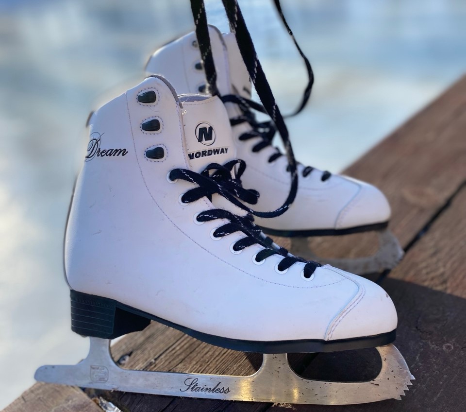 Открытый ледовый каток с зоной для переобувания. и прокаток коньков и плюшек