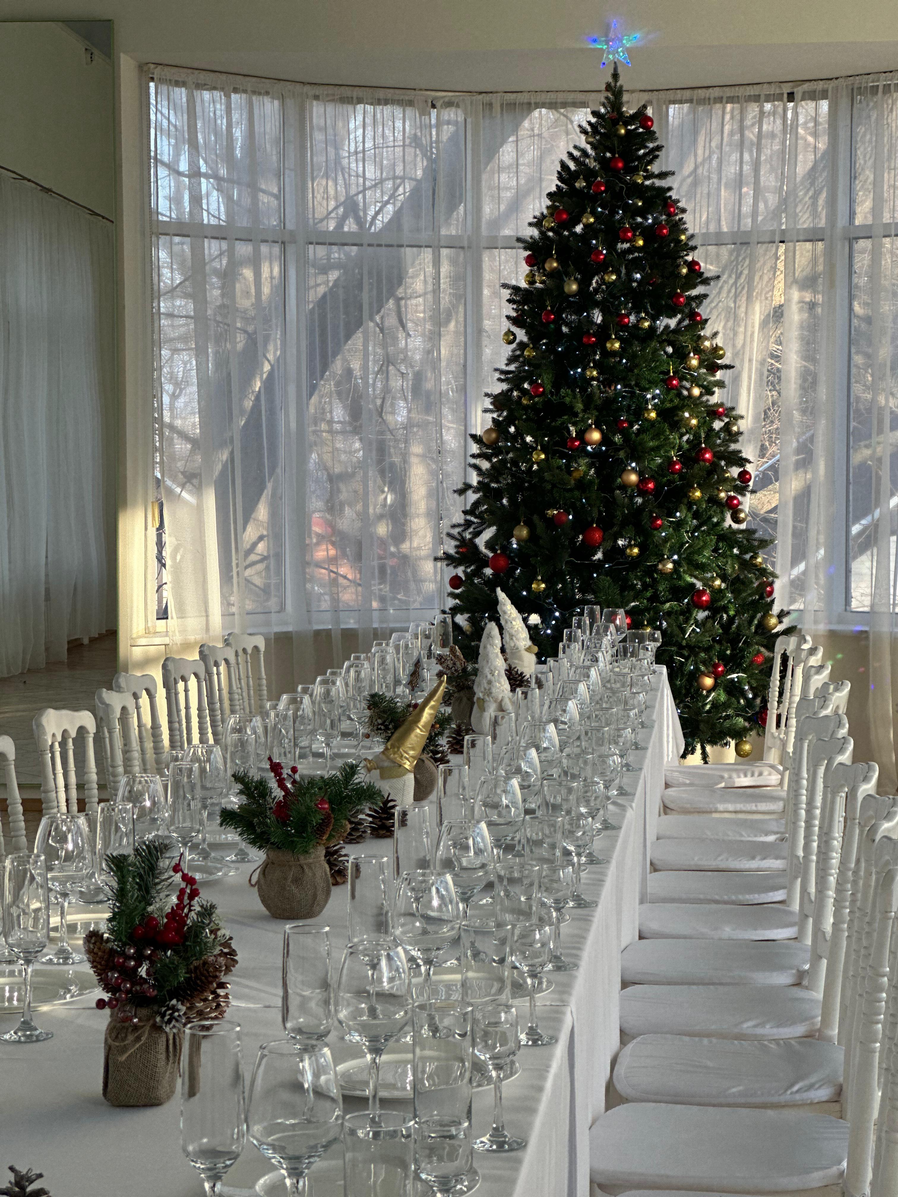 Банкетный зал рассчитан на 50 чел, возможна рассадка за круглыми столами и прямоугольными.